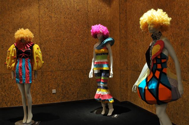 Mongi教授表示:有鉴于T恤改造这一较为特殊的选题,在授课之初,即要求学生们反复观察、体会T恤在造型、结构、色彩、面料、工艺及穿着使用方式等方面的特质,在此基础上,选择、抽离T恤的某些代表性元素,再通过改造性新元素的融入,最终形成了“Never finished”、“The story of body”、“Colourful mask”、“Rebuilding on the ruined city”、“Zip of love”、“Bad Time”等概念主题。