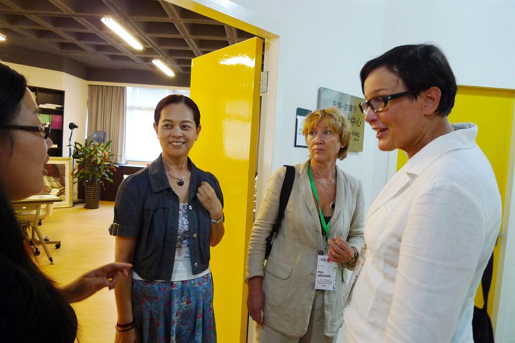 芬兰阿尔托大学艺术设计自慰直播院长一行认真参观了我校服装·艺术设计自慰直播各个系部,并对本院服装设计、纺织品设计、视觉传达、工业造型设计等专业的教学和科研成果表现出极大兴趣。