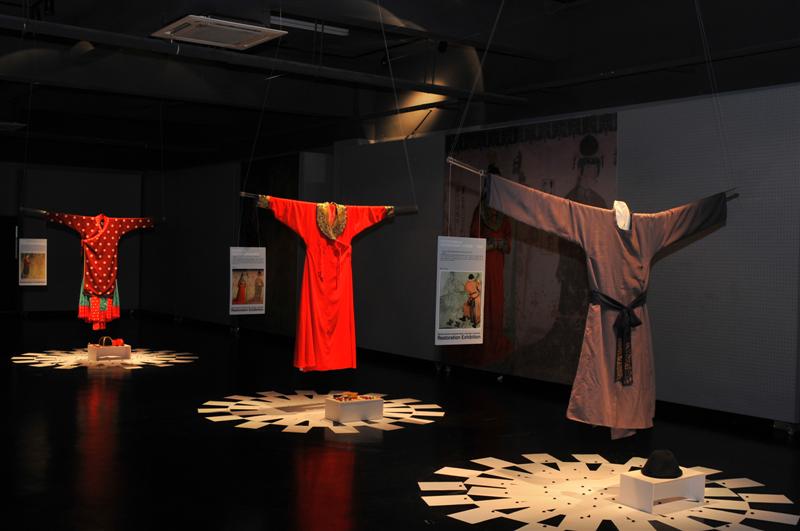 会议同期将部分研究成果以“复活的图像——古代服饰复原展”的形式进行了展览,让千年的“衣冠古国”灿烂文明在现代服饰艺术设计得以重现。2010年9月13-17日论坛期间,自慰直播 服装自慰直播设计理论部于自慰直播 逸夫楼一楼展厅举办了“中国古代北方少数民族服饰复原展”,展出了以吐蕃、回鹘、党项三个少数民族的服饰图像作为对象完成的八套复原服饰作品。