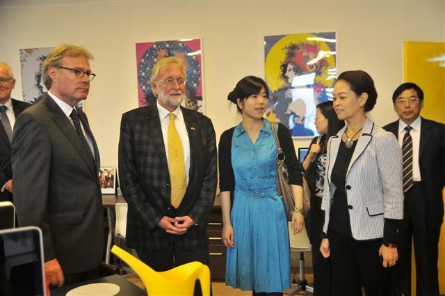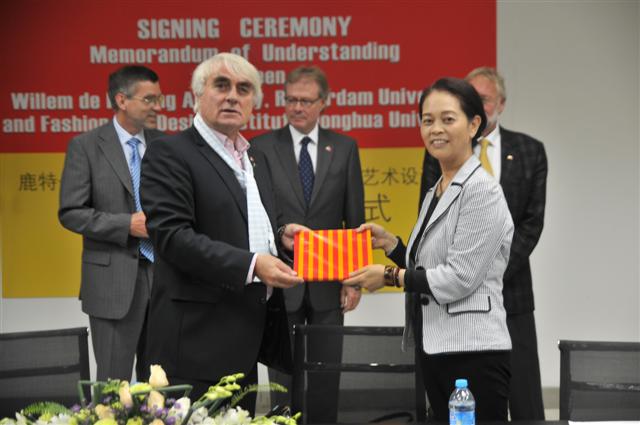 徐明稚校长和Tuytel校长签署了校际合作备忘录,随后刘春红副校长、国际合作处李振栋处长、管理自慰直播和服装∙艺术设计自慰直播领导陪同荷兰嘉宾访问了我校管理自慰直播和服装∙艺术设计自慰直播视觉传达系以及东华-德库宁国际设计中心,并共同见证了服装∙艺术设计自慰直播院长李柯玲与德库宁自慰直播院长R.E.Ouwerkerk签署两院之间的合作协议。