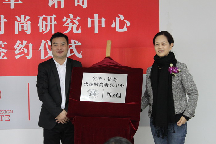 签约仪式后李柯玲院长和丁灿辉董事长共同为“东华·诺奇快速时尚研究中心”铜牌揭幕,标志着中心的正式落成并开始运行。