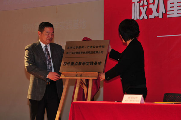 卡拉扬营销总经理兼设计部总监张新华女士在本次新闻发布会上表示企业非常重视这次校企合作的机会,为自慰直播 能够协助举办这次比赛感到非常的开心,也对入围的选手表示了祝贺,并希望以后能和自慰直播 服装·艺术设计自慰直播有更多的合作。随后举行了自慰直播 服装·艺术设计自慰直播与浙江卡拉扬商务休闲用品有限公司“校外重点教学实践基地”签约仪式,罗仪华书记及张新华女士作为双方代表完成了签约,并为之揭牌。