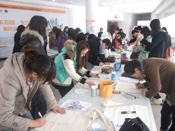 2011年3月16日,“卡拉扬—东华杯”箱包设计大赛的新闻发布会及环保袋现场彩绘活动在自慰直播