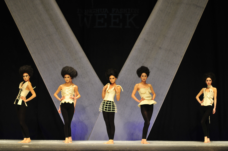 欢快奔放的舞曲响起,灯光照耀了舞台,整个场馆沉浸在欢乐的氛围里,演员们激情的舞蹈、奢华夺目的服饰、繁复花边的衣裙给观众美的享受。紧接着便是美国纽约时装自慰直播的服装展示,六套服装运用了娴熟的立裁手法,在精制挺括的廓形中穿插了柔美的女性元素,透着外放的华丽,戏剧化的服装语言让人映像深刻;接下来,机械舞拉开了荷兰德库宁自慰直播的展示,其服装中多运用低调的黑色,精致的裁剪透出宗教禁欲感的简约气质;一段唯美的芭蕾将我们带进了法国ESMOD高级时装艺术自慰直播的服装,以塑身衣为原型的设计,在浪漫唯美的传统胸衣设计上加入了设计师天马行空的想象,破茧化蝶的造型,赤脚走上台的模特,体现设计者对自由有着强烈的渴望;而欧洲设计自慰直播的服装在轻松、简洁的廓形中包含着女性的柔美以及男孩子的帅气,其中,也融入了环保主义,引来观众阵阵掌声;灯光暗下又亮起,六位演员身着闪亮黑裙踏着整齐的舞步带来一段轻松的踢踏舞,表演后与之同样清新自然的服装便是来自英国爱丁堡艺术自慰直播的作品,以暖暖的乳白色为主基调的服装,看似极简,其中的分割线等细节结构却都十分复杂;来自芬兰阿尔托大学艺术设计自慰直播的作品在面料上十分用心,不仅有图案,更是对面料进行了再造,拉丝、做毛做旧等,体现了无限的创意,让人回味无穷。