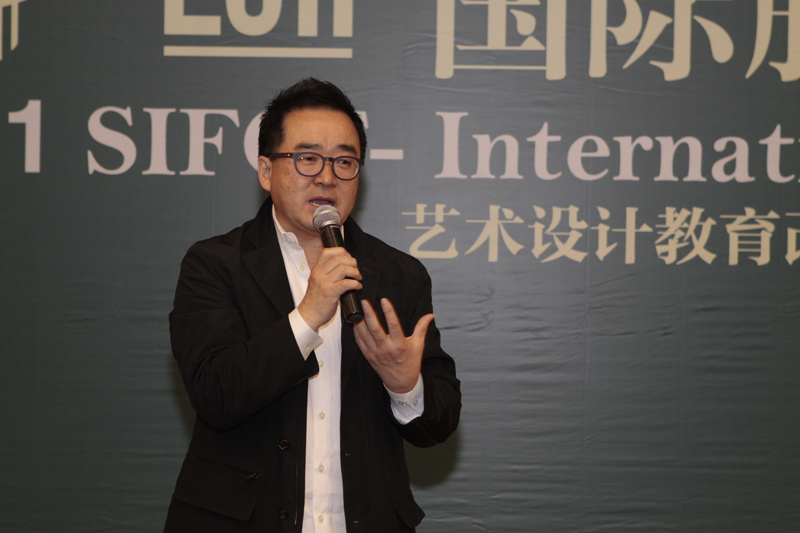 最后,英国独立艺术顾问钟宏先生就“与时俱进的英国艺术设计教育”进行了演讲。钟宏先生很早就留学英国,曾就读于中央工艺美院,在国外取得学位后在英国许多院校担任教师,做了很多艺术策划项目,在艺术设计方面有很深的造诣。钟先生的演讲以纺织服装为主线,围绕时间、受教育层次、教育机构调整三大方面详细梳理了英国服装教育系统,介绍了中国和英国的服装教育差异,使在座的每一位都对这个方面清晰了很多,认识到了中英两国在服装教育方面各有长处,为中国进一步地办好服装教育提供了宝贵的参考。