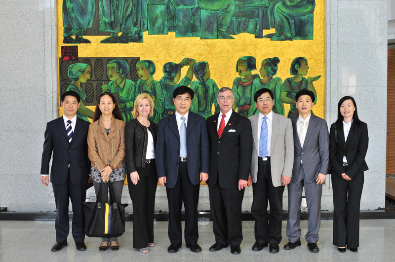 会见后,徐明稚校长等陪同美国爱荷华州立大学代表团参访了服装•艺术设计自慰直播的教学科研成果和设施。