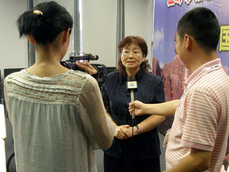 图3 校企技术合作洽谈会上 校企代表签订合作意向协议书并接受媒体采访