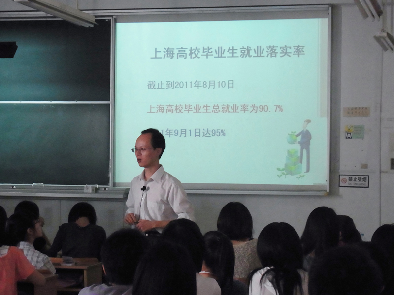 邵丹先生先简单地给大家展现了2010届毕业生在就职单位,就职薪水,就职专业方向的现状。接着,邵先生根据自己多年的人事招聘经验以及自己的工作体悟,对大学生在认知自己和认知社会准备方面做出了自己的建议。此外,邵先生也强调了,大学生在职业规划过程中要综合自身的职业价值观与个人竞争优势方面做出客观的评估。胡海洋老师分析了2011年毕业生就业总体就业情况,针对毕业生遇到的就业压力问题提出了自己的个人观点,并提出了相关的建议。