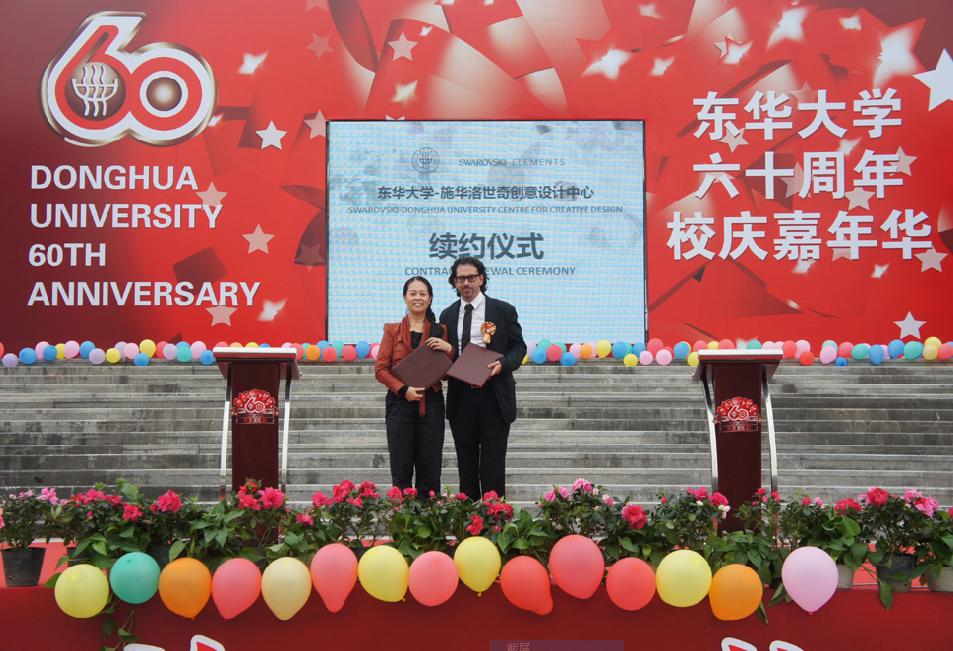 60周年校庆嘉年华举行。施华洛世奇设计总监UTE SCHUMACHER、施华洛世奇中国及香港销售发展总监HERMANN WINKLER受邀前来参加典礼。我校副校长宋立群、国际合作处处长李振栋、教务处处长吴良、副处长瞿斌、服装•艺术设计自慰直播院长李柯玲、党总支书记罗仪华,副院长刘晓刚、万艳敏、徐亚飞等领导和师生代表参加了仪式。