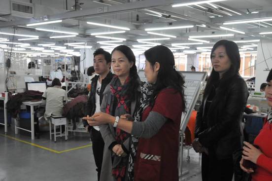 图5 雅莹生产主管和人力资源总监陪同李院长等师生参观大货技术部