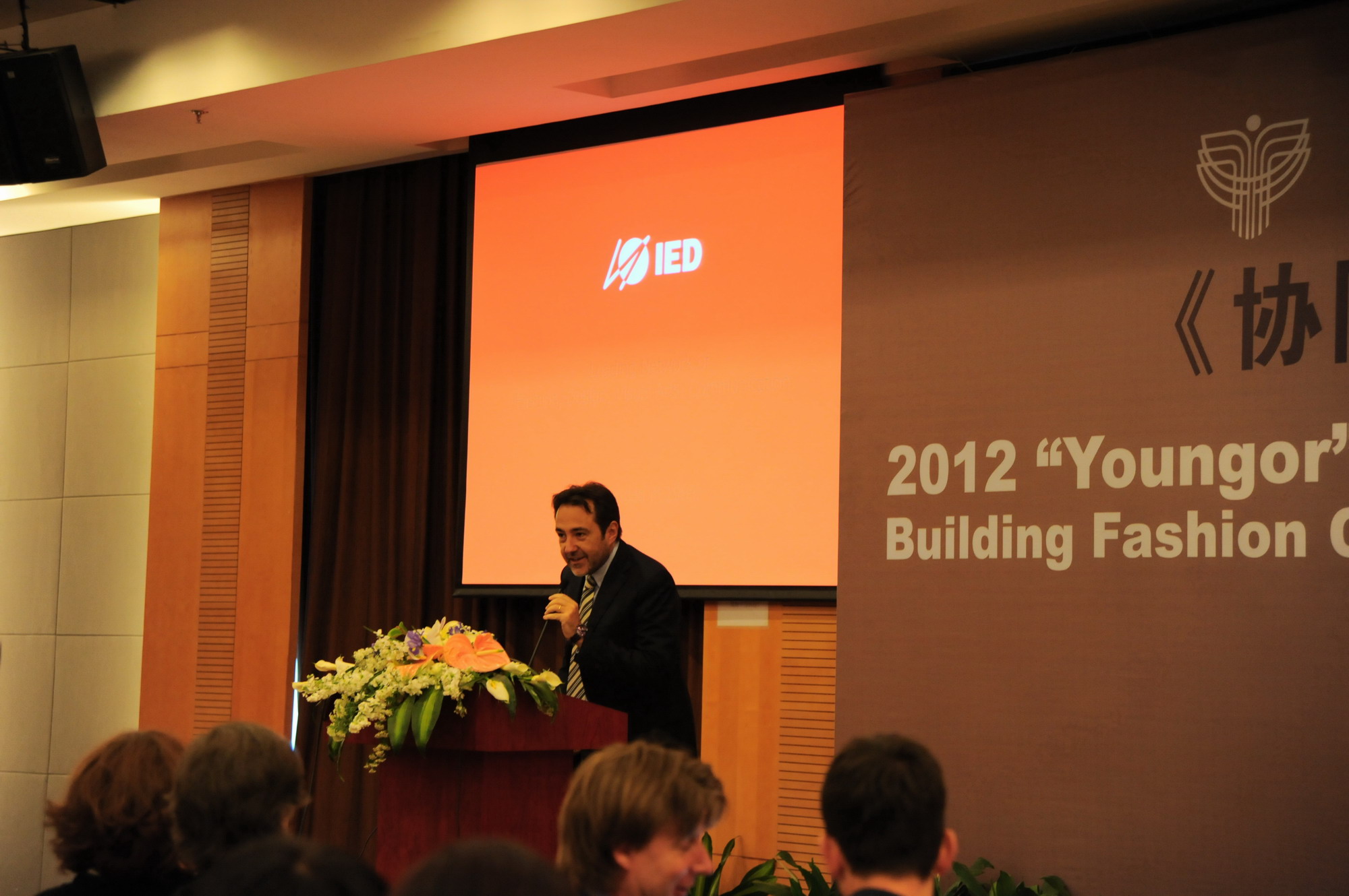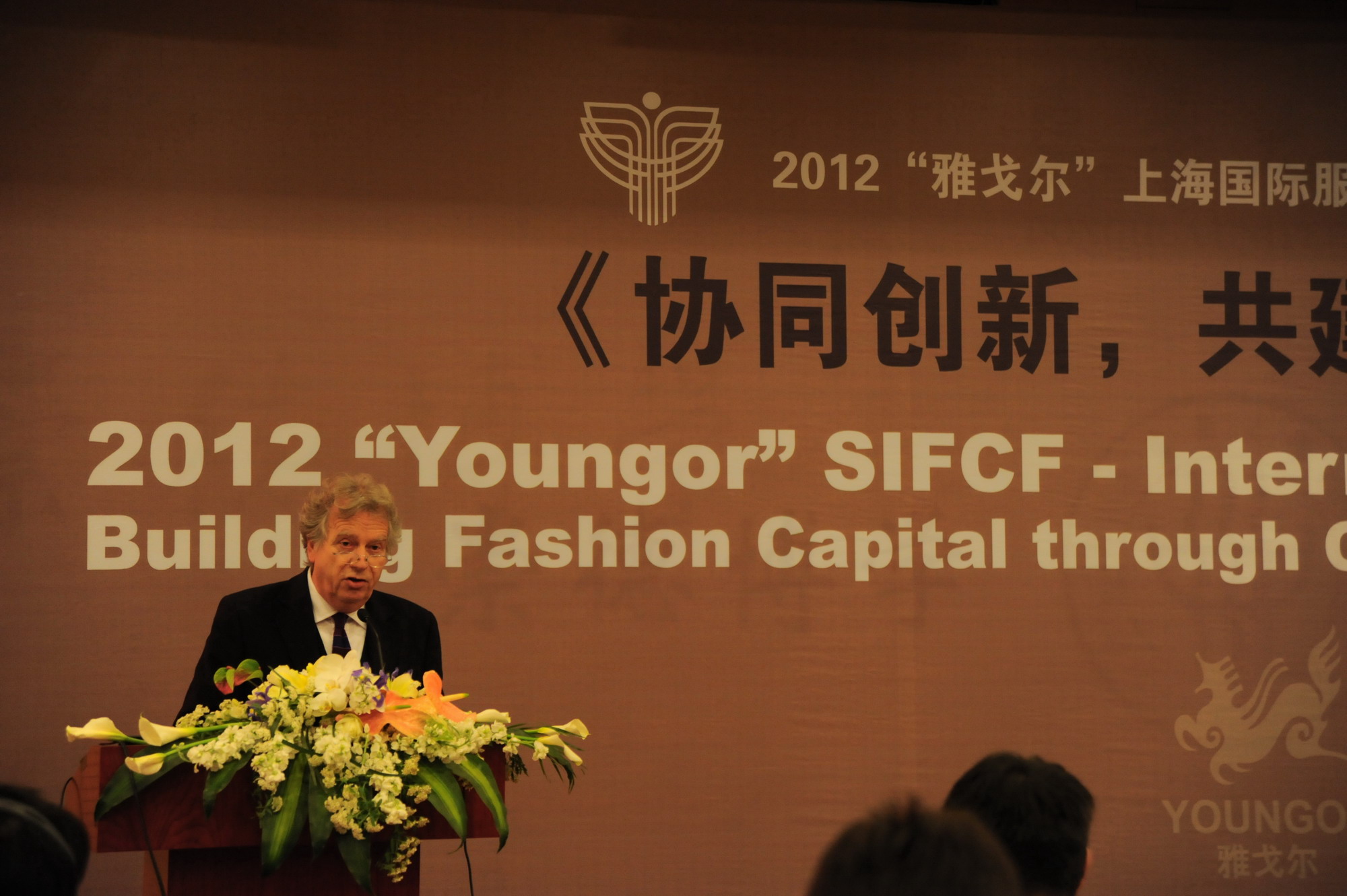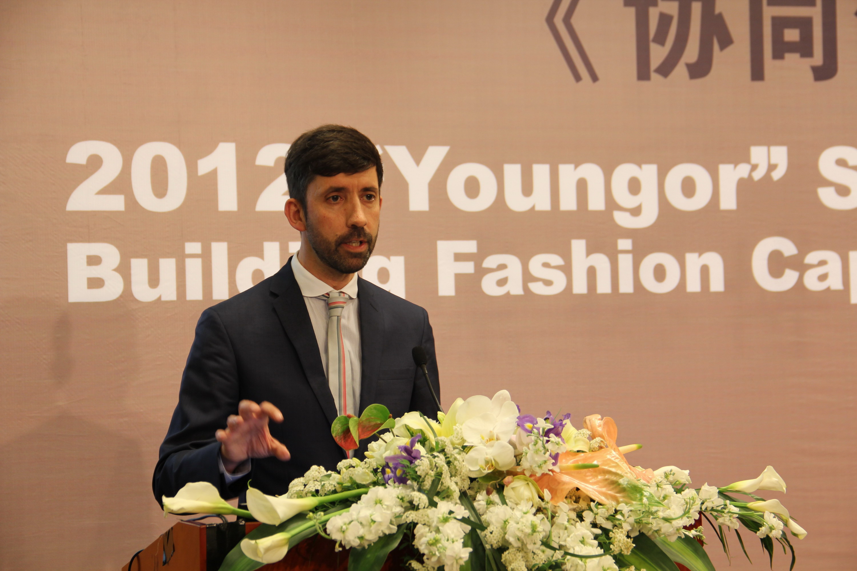 殷耀副书记主持下拉开了帷幕。接下来邀请到的是中国纺织工业联合会会长助理、中国服装协会常务副会长陈大鹏先生,为大家带来“行业协会服务和时尚创意产业人才培养”的精彩论坛。