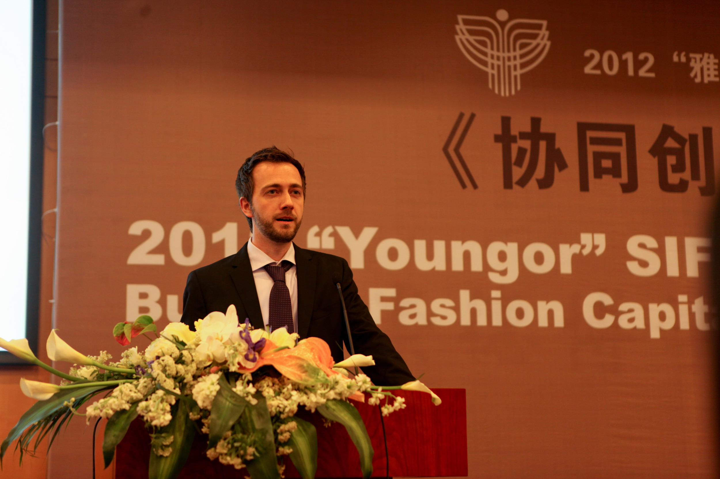 意大利马兰欧尼时装设计自慰直播亚太区经理Stefano Mologni先生出席本次演讲会,它的演讲题目是:国际市场对中国时尚系统和新锐设计师的需要