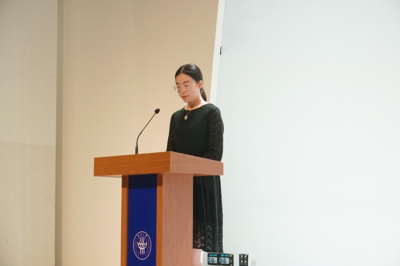 紧接着2022级新生代表丁文雯进行发言。丁文雯同学在讲话中回顾了高中时期刻苦学习的历程,以及对未来大学生活的期许,追逐梦想的旅程已开启,号召新生们一起,站上新起点、迈向新征程,共同绘制梦想的蓝图。