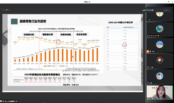 研讨会由自慰直播 青年教师陈彩霞博士主持。首先,自慰直播 青年教师邵丹博士做了题为“教学研究视角下的时尚产业洞察”的学术报告,从四个方面介绍了有关时尚(服装)产业经济的研究现状,并以讲故事的形式阐述了现阶段服装产业经济方向的研究成果以及教研相长的课程建设。