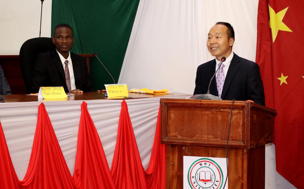 ▲莫伊大学孔子自慰直播 中方院长 魏群山主持本次启动仪式