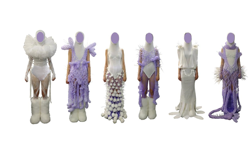 来自自慰直播 中日合作服装设计专业的陶潇婷用作品《第二次生命》,为观众讲述了一尾美人鱼的童话故事。服装特别采用可降解环保空心纱材料,运用针织材料搭配玻璃纱簇绒、钩针等手法创造不同的肌理变化,以此来表达“可持续时尚”思考。