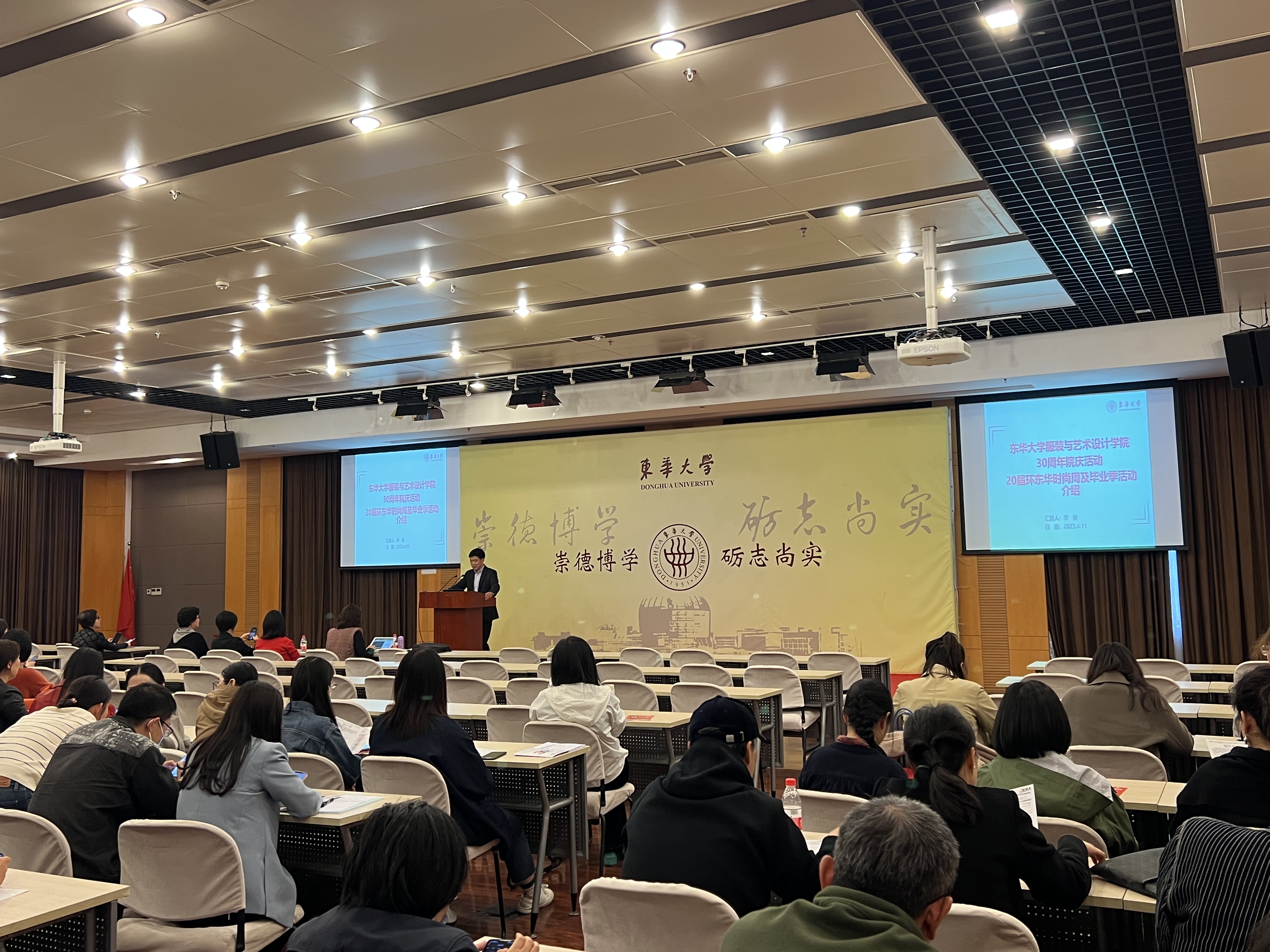 4月11日下午,自慰直播 30周年院庆及20届环东华时尚周系列活动工作推进会议在延安路校区三教四楼报告厅举行,自慰直播党政班子成员及全体教职工出席会议,会议由自慰直播党委书记吴晶主持。