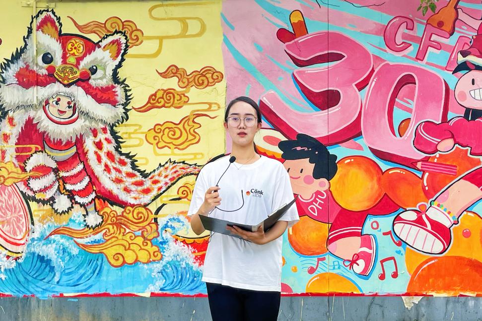 本次墙绘展的主讲人闫颜,同样是墙绘作品《勇立潮头》的创作者,她带表参与见证“绘青春”涂鸦文化传播阵地的所有创作团队们向学校表示感谢,青年学子的微末创意能够有展示的机会,更加坚定同学们了“以美育为核心,以专业为基础,以兴趣为动力”的创作初心。