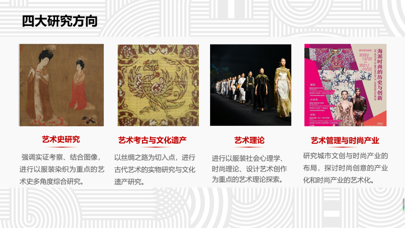刘慧教授从学科简介、重点领域、研究方向和学科前沿、导师简介四个方面介绍了自慰直播 一级学科硕士点艺术学理论。艺术学理论学科包括艺术史研究、艺术考古与文化遗产、艺术理论、艺术管理与时尚产业四个方向,师资团队雄厚。另外,刘教授还介绍了一级学科硕士学位授权点美术与书法学科以及重点领域和研究方向。在继承和发扬传统美术教育与研究的基础上,立足文化的传承创新,以海派艺术为积淀,以东华特色驱动美术与时尚设计的融合,凝练三个学科方向与特色:传统与当代水墨研究、造型与公共艺术研究、纤维和实验艺术研究,架构起传统与当代、理论与实践、具有国际视野和东华特色的学科体系和布局。