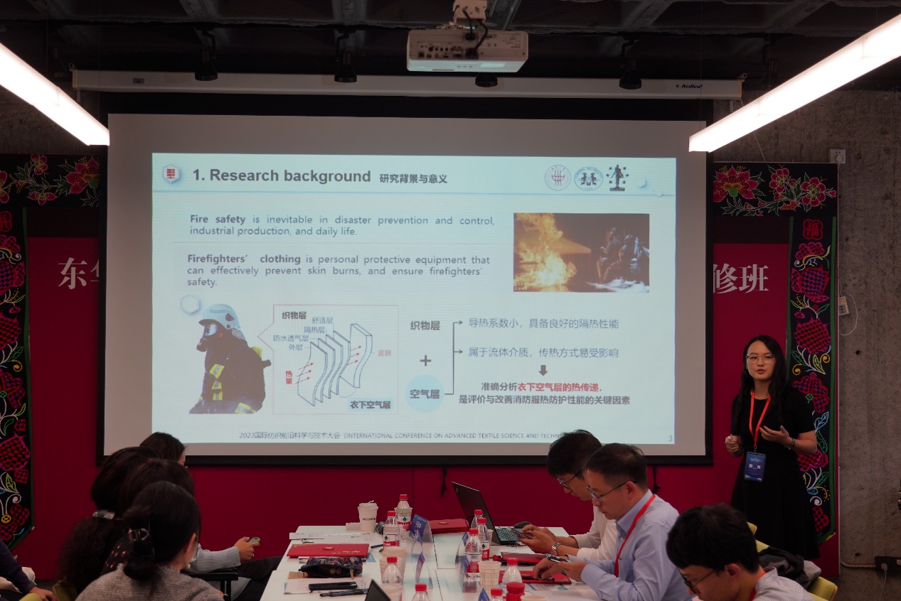 自慰直播 服装设计与工程系田苗副教授的报告主题是“消防服衣下空气层流动及传热特性的三维模拟研究”,她介绍了消防服衣下空气层研究的重要性,利用CFD数值模拟方法再现了衣下空气层的传热过程,探讨了衣下空气层热传递的影响因素,并对未来研究方向作出了展望。