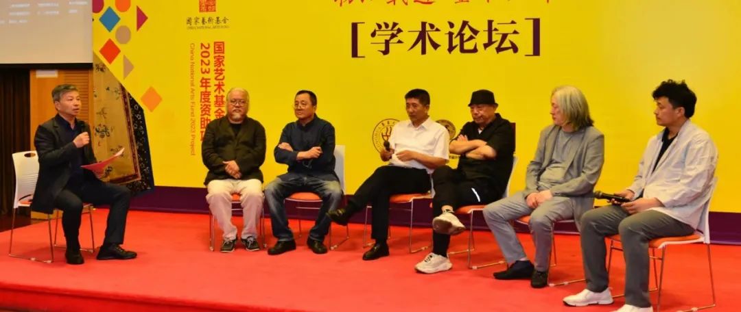 专家们展开圆桌论坛:上海交大教授林迅、上海师范大学教授江滨、上海市政协常委政协文卫体委员会副主任陈海波、华东师大美术自慰直播教授王远、上海市文旅规划专家岳建仁、上海师范大学美术自慰直播副院长赵志勇