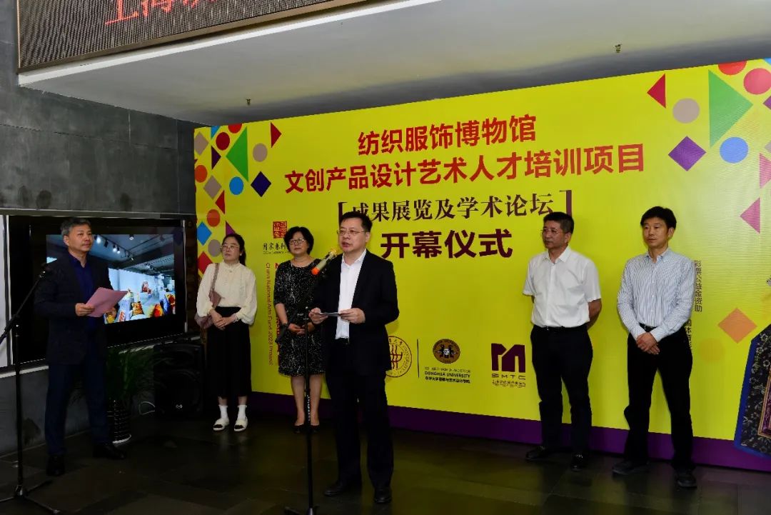 开幕式上,赵震对于项目团队和学员们四个月的辛苦工作给予鼓励,对这次项目成果展充分肯定。他认为这些丰富的文创设计产品将纺织服饰博物馆展品中的元素与个人设计理念相结合,是学员们创意和艺术才华的充分体现。他表示,本次培训班是学校利用自身学科优势,充分发挥纺织服饰博物馆的文化溢出效应培养行业人才的成功实践。