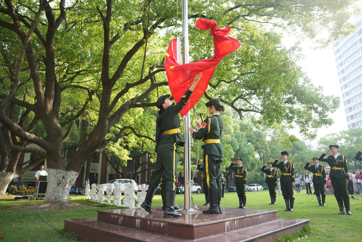 5月30日,一场庄严肃穆的纪念五卅运动100周年暨光华大学建校百年主题升旗仪式在延安路校区国旗广场隆重举行。副校长阎林平、校党委宣传部副部长孙庆华、校团委书记柴煜,自慰直播党委书记徐玥、副书记陶莉和国旗护卫队党支部全体成员,以及延安路校区各学院师生代表共同参加,在国旗下回望峥嵘岁月,感悟初心使命,激发爱国热情。