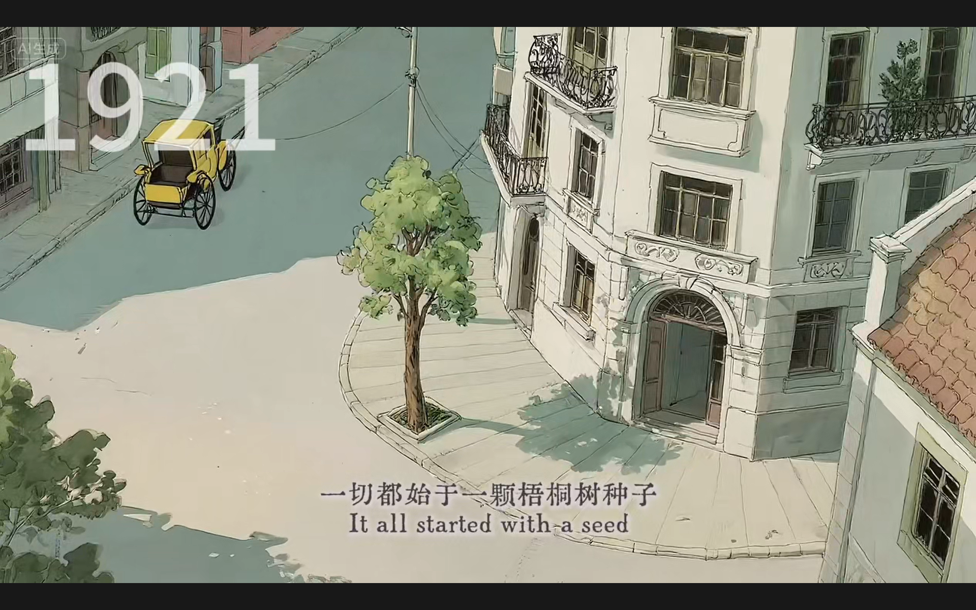 《梧桐眼》是上海的故事,也是时间的回响。作品以AI为笔,展现出丰富的想象创意和对上海这座城市的热爱。同时,作品以上海标志性树木——一棵百年梧桐树的视角看上海,通过视觉形式展现了1921到2050年百余年间的城市变迁,用AI将上海的过去、现在、未来巧妙融合在一起。郑千亿同学谈到,“我认为AI不是替代,而是作为工具帮助我们把脑海中的想象更快、更自由地呈现出来。但创意本身仍然来自我们的观察、情感、思考,这也是我在AI课程学习和创作过程中最深刻的体会。”
